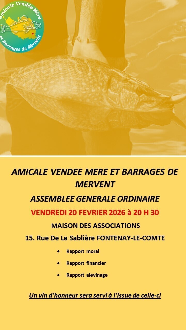 L'Amicale Vendée Mère et Barrages de Mervent fait son assemblée générale le Vendredi 20 Février 2026 à 20h30
